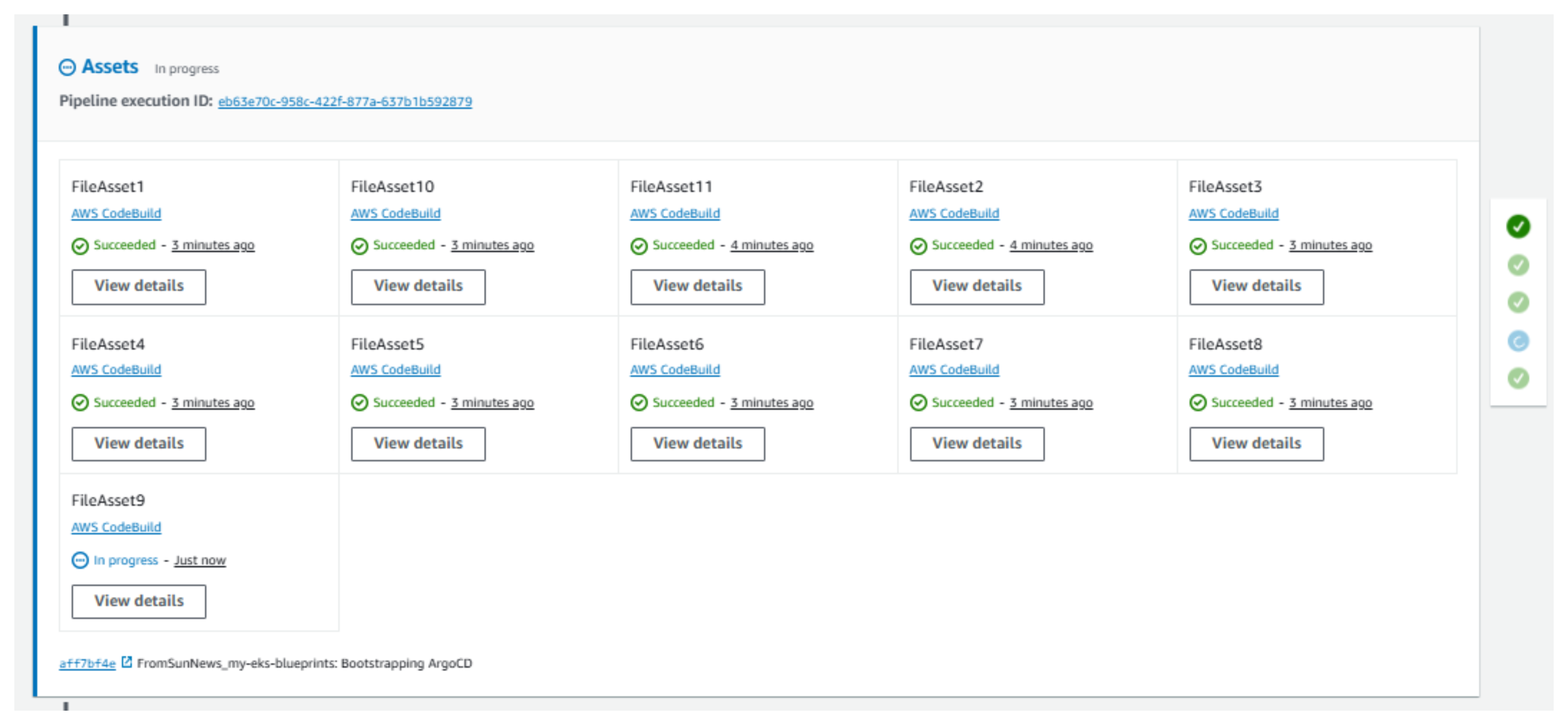 - UpdatePipeline: This is an extra build stage that runs to check if the pipeline needs updating. For example, if the code is changed to include additional (out-of-production) stages, UpdatePipeline will run the build and reconfigure pipeline that needs to add those additional stages. This stage is the Assets needed to run the stages.